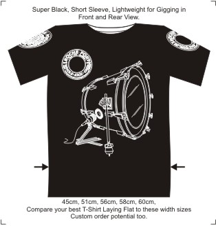 Not many T-Shirts with a full bass drum on both sides. Just like a great bass drum has full skins front and back